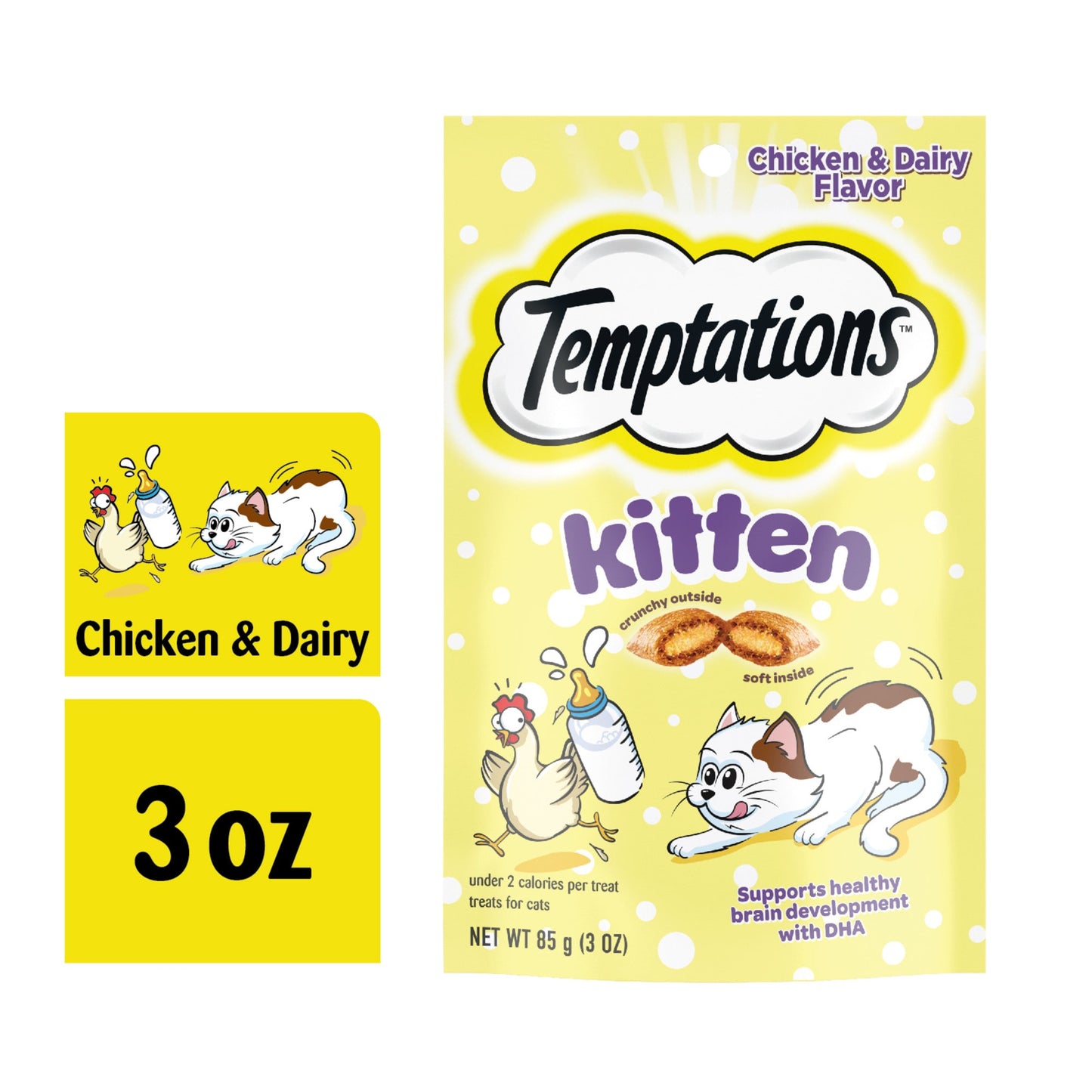 TEMPTATIONS Chicken and Dairy Flavor Crunchy and Soft Kitten Treats 3 oz.