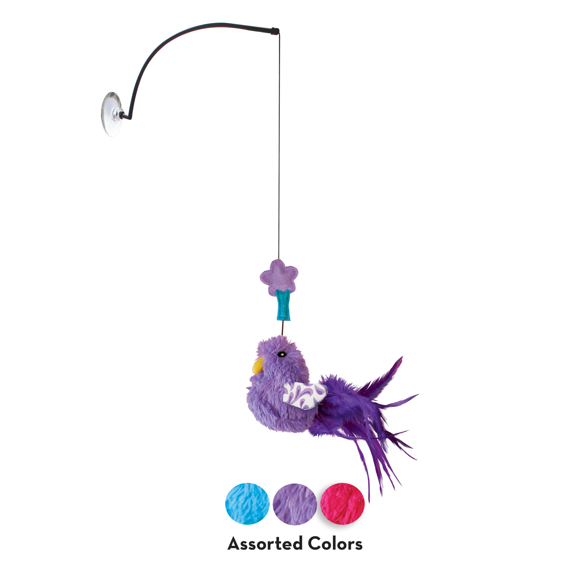 KONG Active toys promote healthy exercise and fulfill cats’ instinctual desires to chase, hunt and capture. The KONG window Teaser affixes to smooth surfaces, creating an active challenge for cats, even when you’re not available to play. Each toy contains KONG Premium North American Catnip, bright feathers and a crinkle sound for added stimulation.