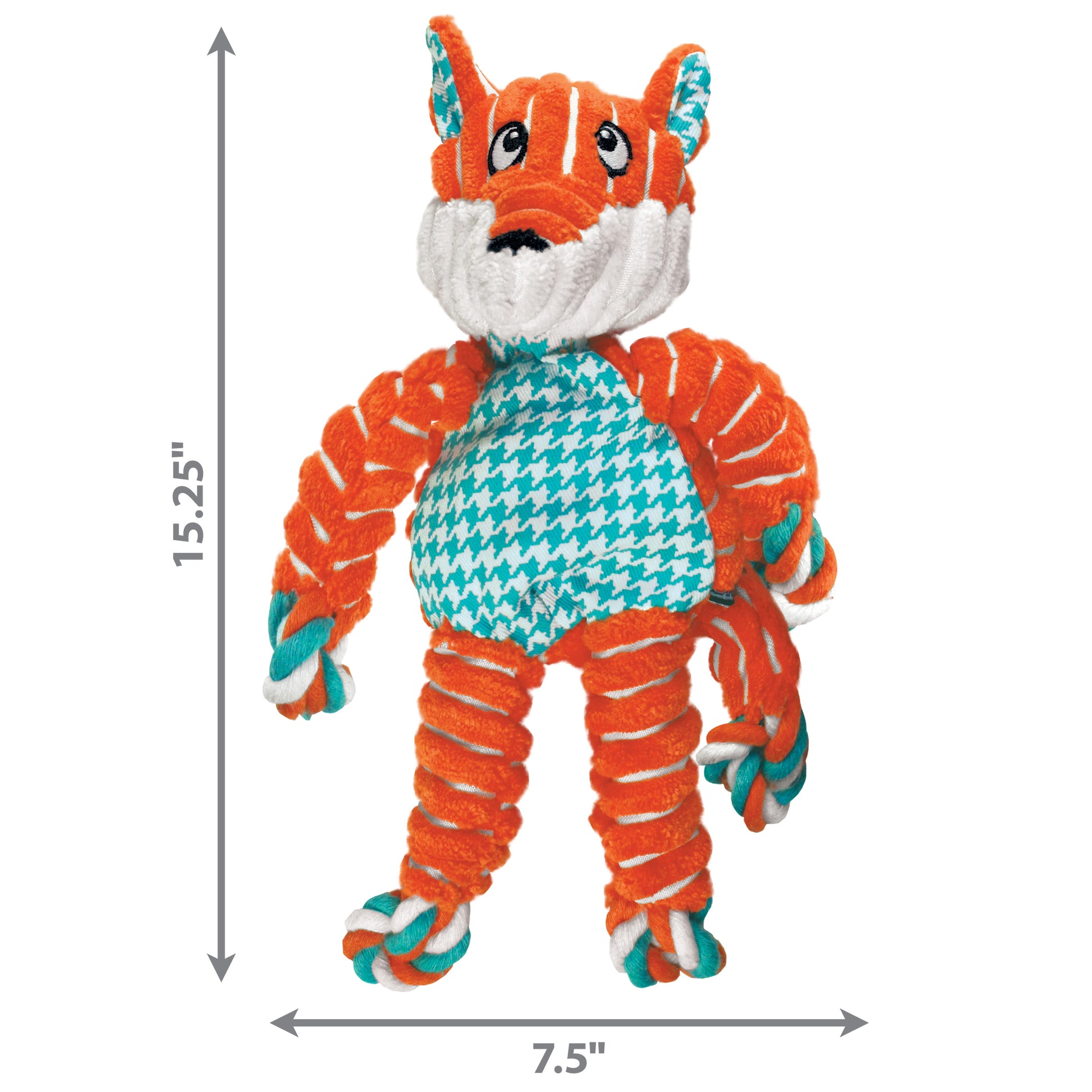 KONG Floppy Knots are the newest arrival in the Knots tribe with a cheerful, floppy design allowing for great thrashing fun. The realistic feel of the internal knotted rope satisfies natural instincts while the varied textures and squeakers gear up for play. With minimal stuffing for less mess get ready for entertaining games and grins.