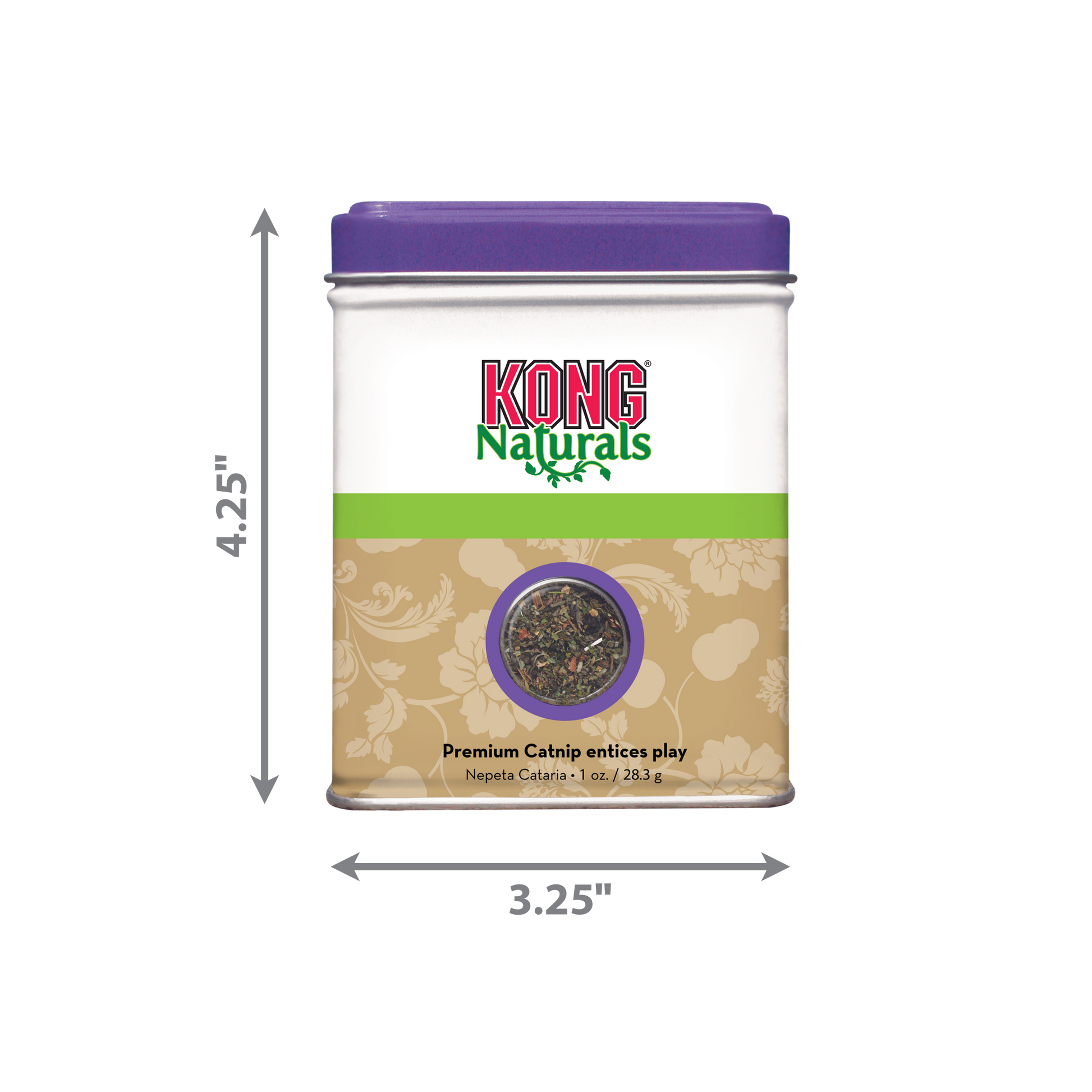 KONG Naturals Premium North American Catnip stays fresh in a handy, resealable portable tin. Use as a standalone treat, to refill KONG toys and to sprinkle on toys and scratchers for a pinch of happiness and to encourage appropriate scratching behavior.