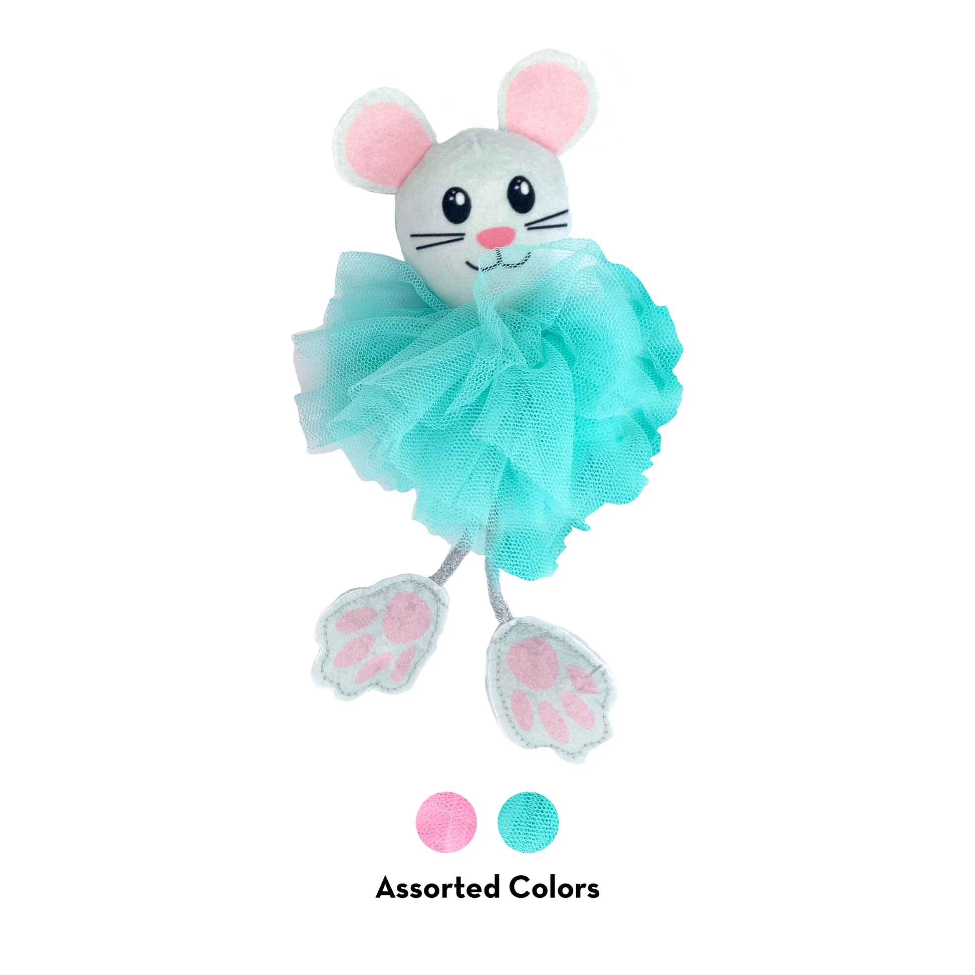 KONG Flingaroo Tutu launches cats into pirouettes of healthy, instinct-satisfying pounce-and-capture play. This ballerina mouse features a tulle puff that’s easy to grab and dangling paws that make dragging even more delightful. Jingling bells in feet and KONG Premium North American Catnip extend the paw de deux.