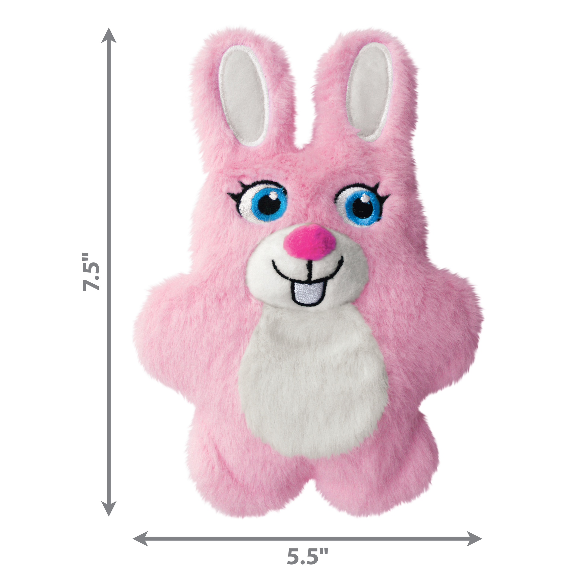 KONG Snuzzles Bunny is plump full of fun with a full body squeaker that calls out with a long, loud squeak. The dense mouthfeel rewards appropriate chewing with every bite.The super soft plush invites soothing snuggles. Ideal for indoor fun, the flat shape is ideal for small dogs to grab.