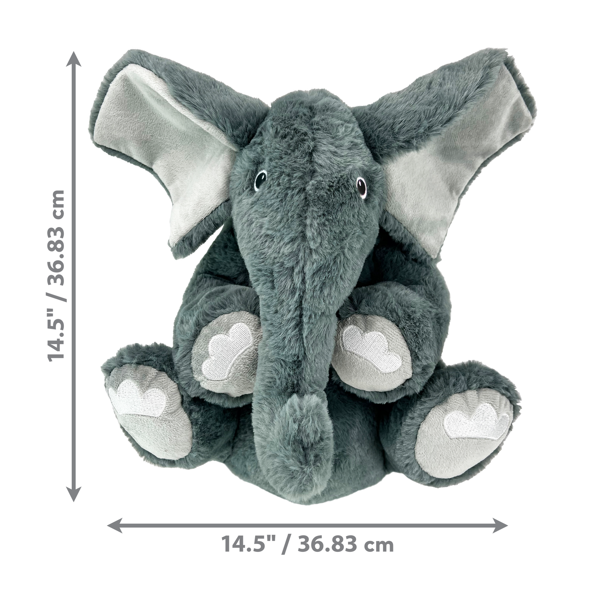 KONG Comfort Kiddos Jumbo Elephant’s ginormous size means extra-large adventures with a playful pachyderm whose squeaker can be removed for quiet play. Big, floppy ears and trunk make shaking even more fun and the soft, snuggly plush invites cuddles with a big naptime buddy between bouts of elephant-sized action.