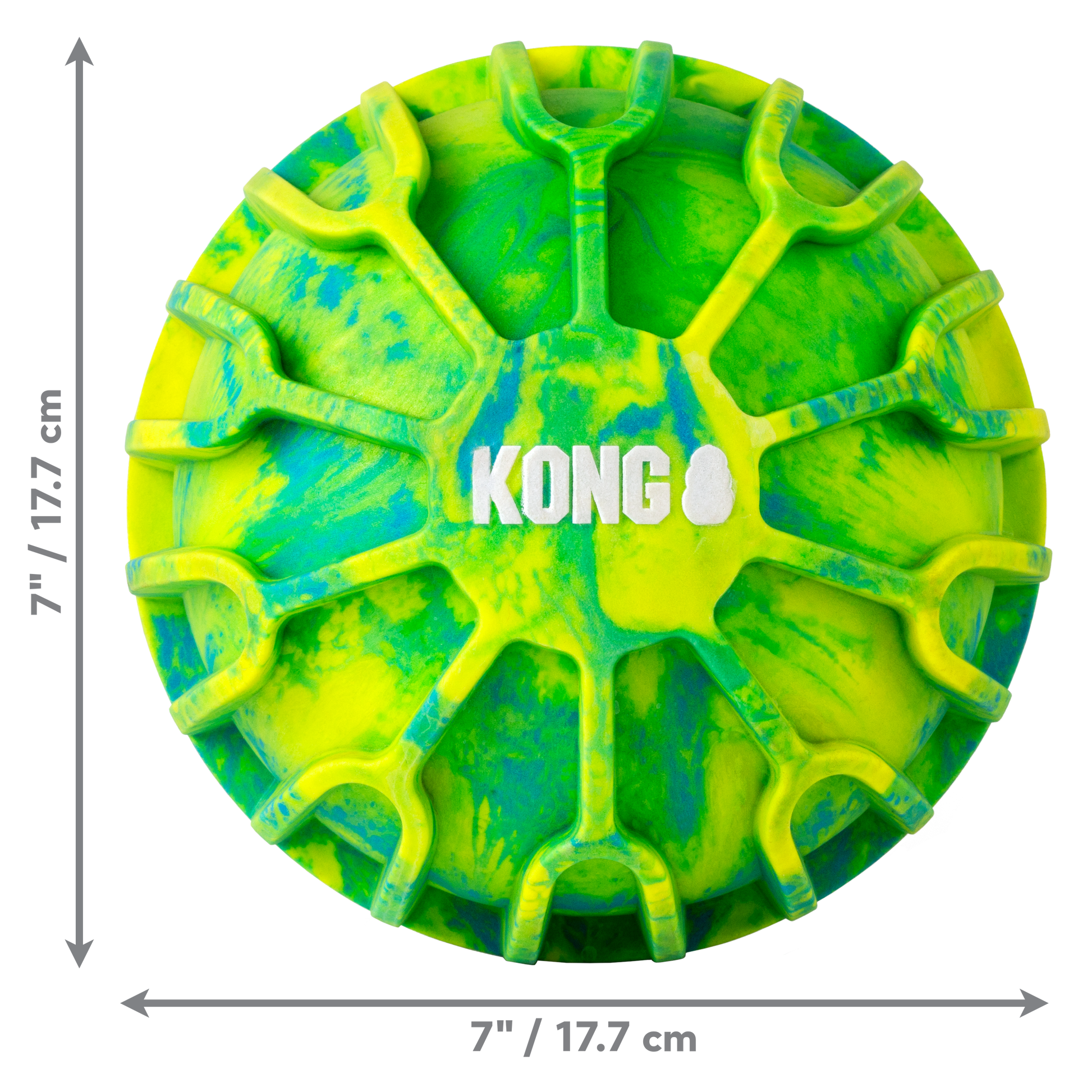 KONG FlexBall brings an energetic bounce to fetching fun! The durable swirled material is the right combination of firm and cushiony, with deep ridges providing an easy grip for hands or teeth. FlexBall’s ideal weight invites the perfect pitch to long outdoor play sessions—it even floats in water!