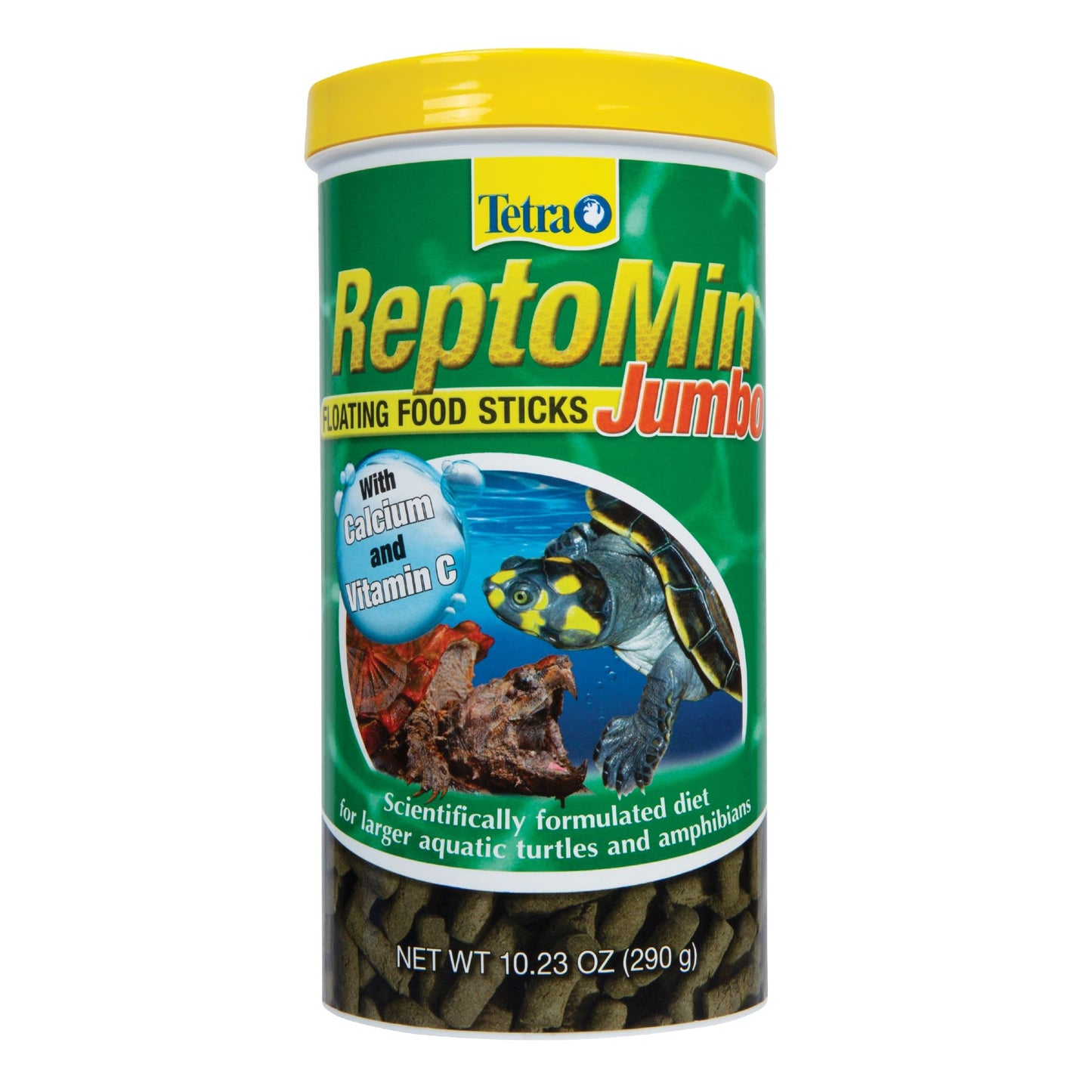Tetra Tetra ReptoMin Jumbo Floating Food Sticks is a scientifically formulated top-quality daily diet for all large aquatic turtles (more than 6 inches in shell length) amphibians and other large aquatic reptiles. This easy-to-digest balanced diet contains precise amounts of calcium and Vitamin C to support your pet?s vitality and good health while high-quality proteins and essential amino acids promote healthy growth. Feed 1 to 2 times per day only as much as your pet can consume within several minutes. For variety supplement this diet with one of the Tetra ReptoTreat foods.Knowing what to feed your small aquatic pet depends largely on its species. If you do your homework feeding your reptile or amphibian a healthy diet will be simple. Is your pet an herbivore carnivore or omnivore? Does it eat every day? Does it need dietary supplements? Do your research carefully on your pet so you can be sure it?s getting the nutrition it needs.Tetra Tetra ReptoMin products are trusted by pet owners to meet the n
