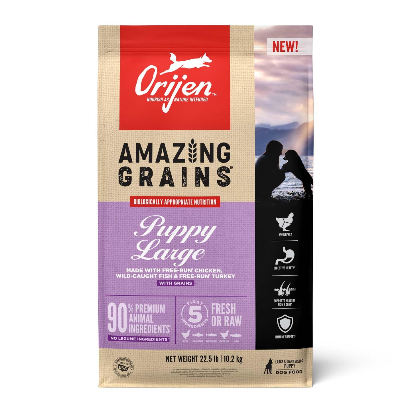 ORIJEN Amazing Grains High Protein Large Breed Dry Puppy Food, 22.5 lbs.