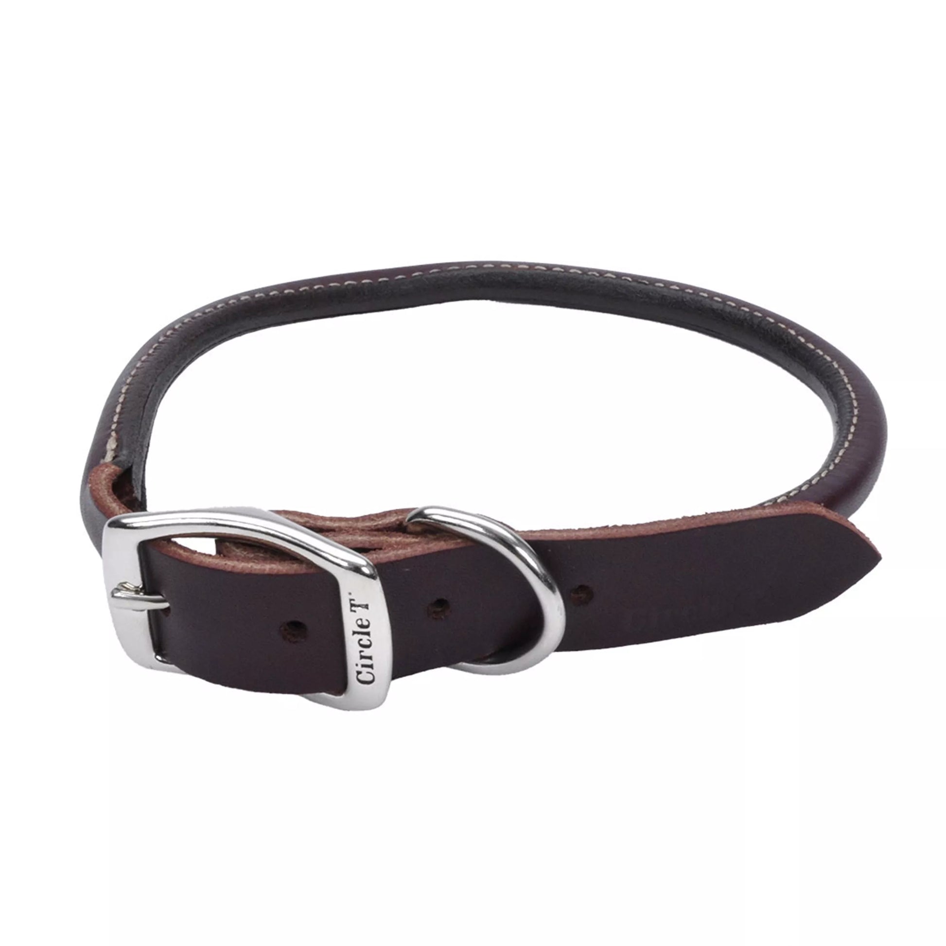 Coastal Circle T 3/4in Wide 20in Leather Round Dog Collar, Latigo