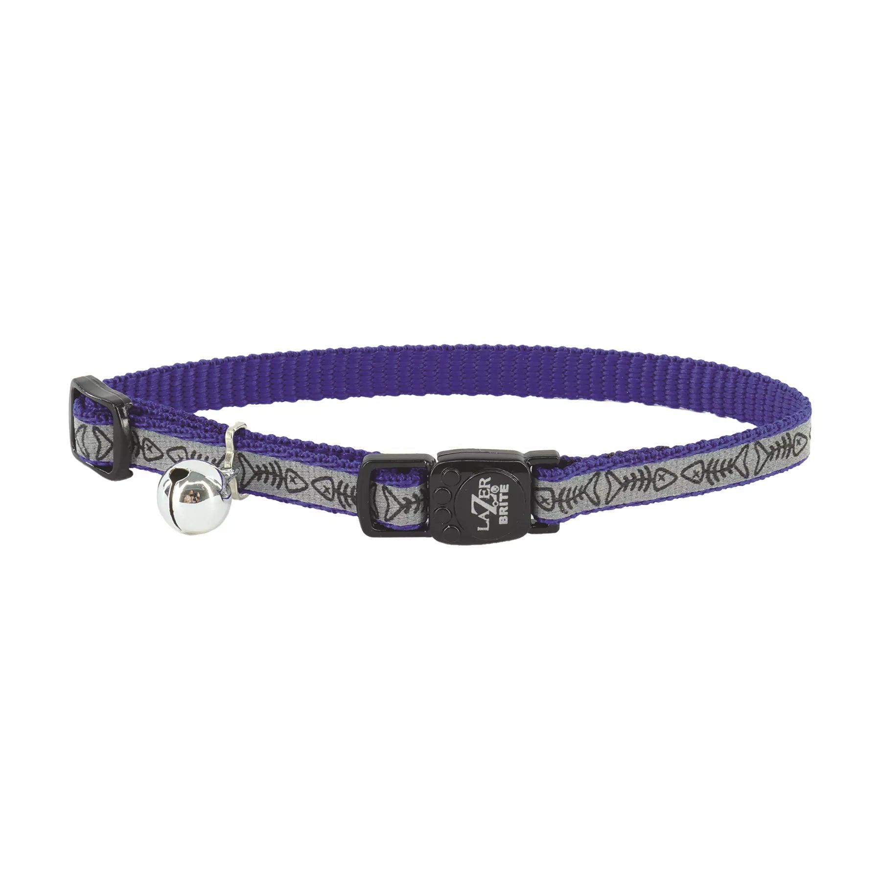 Coastal Lazer Bright 3/8in Wide 8-12In Reflective Breakaway Cat Collar Blue Fish Bones