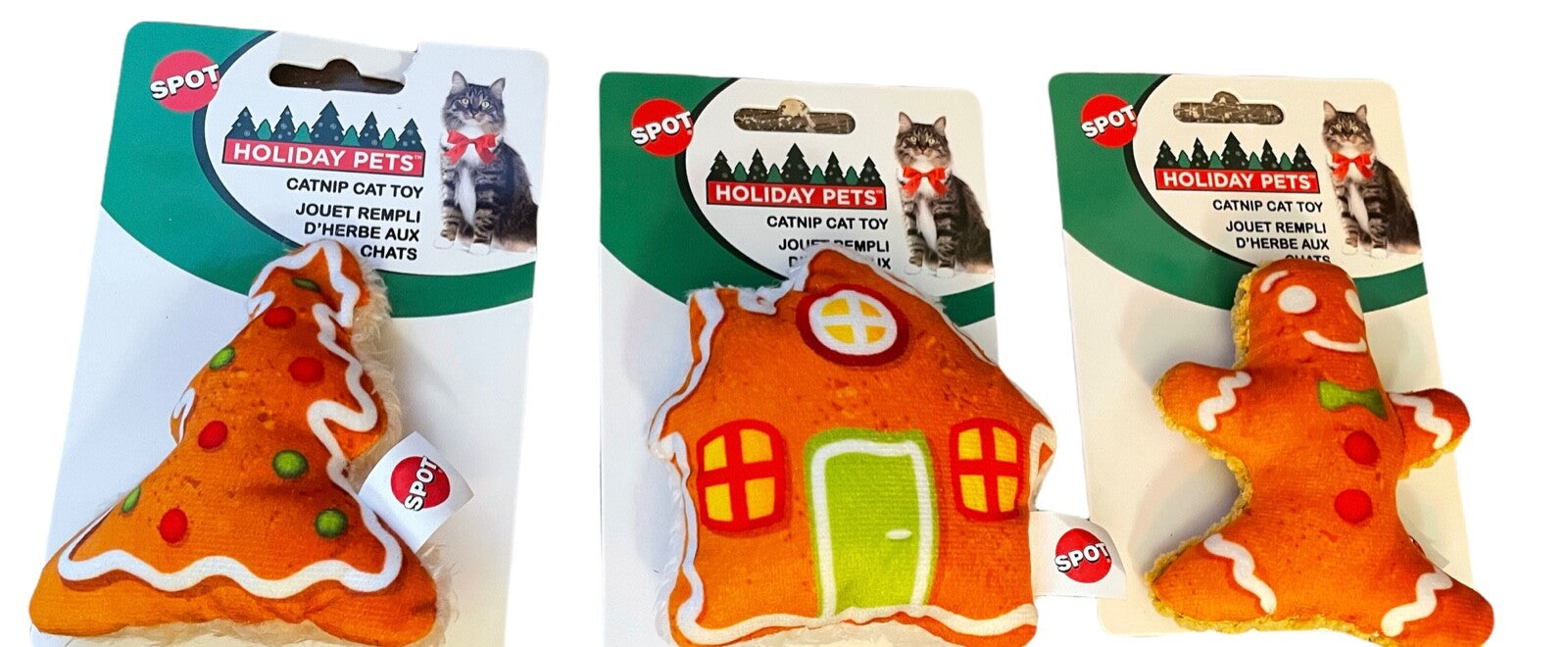Spot Holiday Plush Catnip Toy Gingerbread Man House Tree 4in Assorted