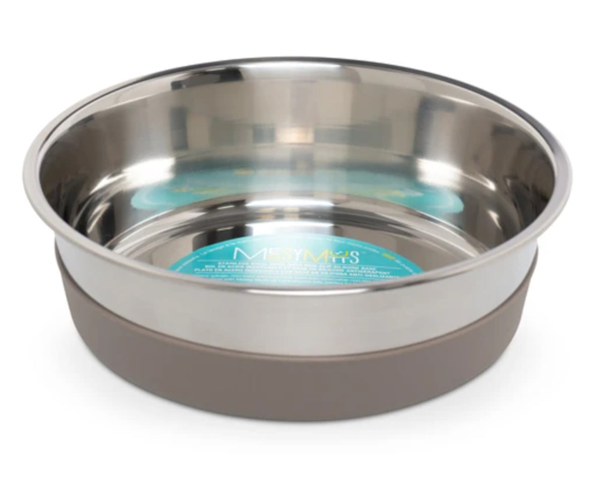 The best of both worlds Messy Mutts stainless steel bowl with non-slip removable silicone base prevents damage to your floors noise and holds bowl in place while providing the strength and resilience of stainless steel. Features Heavy gauge non-toxic stainless steel dog bowl Removable silicone bottom keeps bowl in place Dishwasher safeSpecifications Size: Large - SKU: NDPS36023