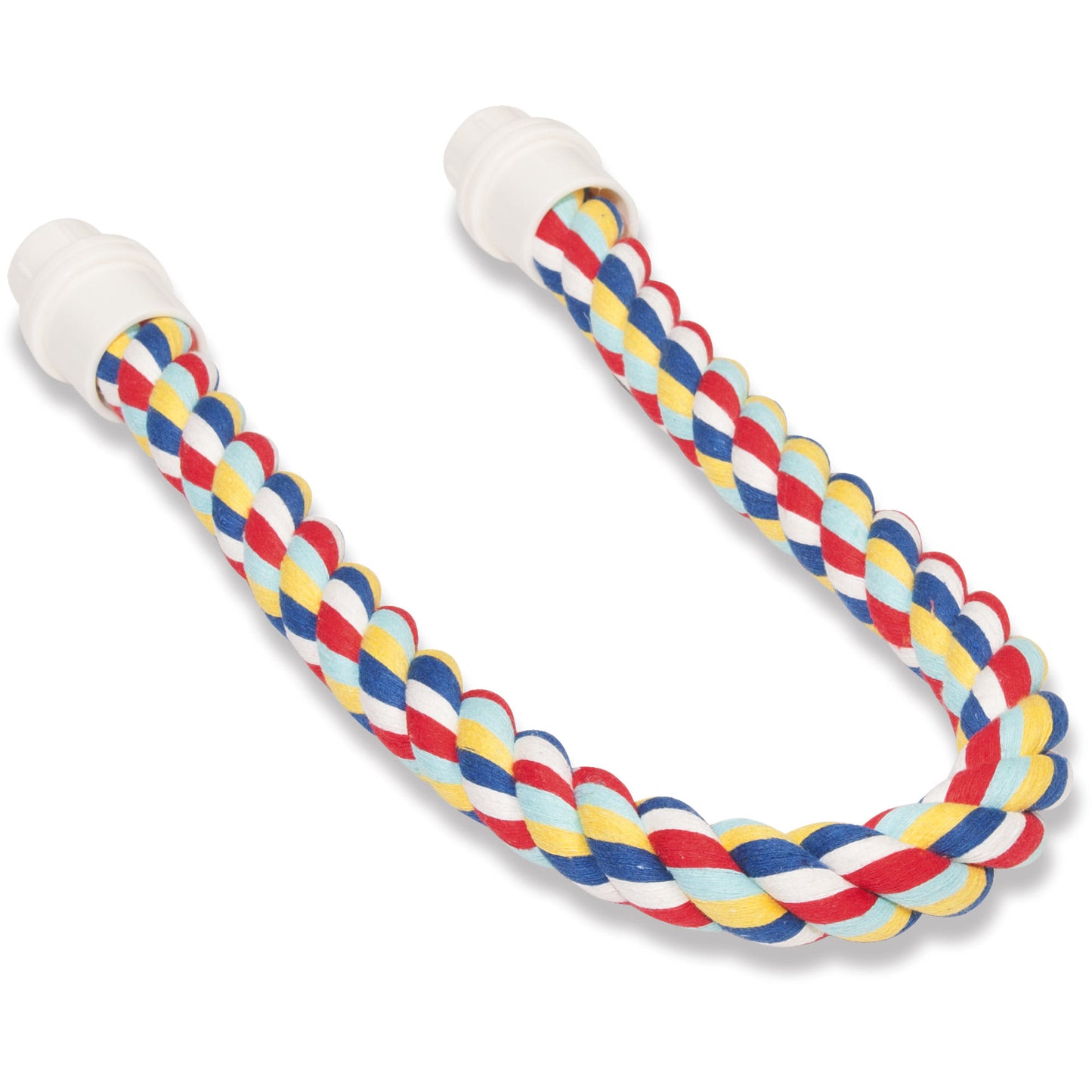 JW Pet s Comfy Perch is a versatile rope perch that provides entertainment and exercise for pet birds of all sizes. These flexible bird perches for parrots are easy to bend and twist into a variety of creative shapes allowing pet parents to keep birds stimulated with different perch styles. Modifying the bird cage with perch variations promotes exercise and improves birds grip strength as they climb a variety of perch shapes. The bright colors attracts birds to the perch and the soft curved rope provides gentle support for birds feet for long-term joint health. Plastic easy-twist attachments ensure convenient placement in bird cages and allow pet parents to install the rope horizontally or vertically. The JW Pet Comfy Perch is available in three sizes and offered in a variety of lengths and widths to accommodate smaller birds like Budgies Parakeets and Cockatiels or larger birds like African Grey parrots Cockatoos and Macaws.