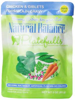 Natural Balance Platefulls Adult Cat FoodNatural Balance Platefulls Adult Cat Food contains a unique blend of flavors in a delicate tasty gravy sauce for an irresistible, healthy meal. Tempt your cat with these savory grain-free entrees. Contains flaxseed and salmon oil for great skin and coat. Platefulls Adult Cat Food are formulated with nutritious ingredients and contain no corn, soy or wheat. Give your feline friend the nutrition she deserves with our natural, grain-free cat food entrees.