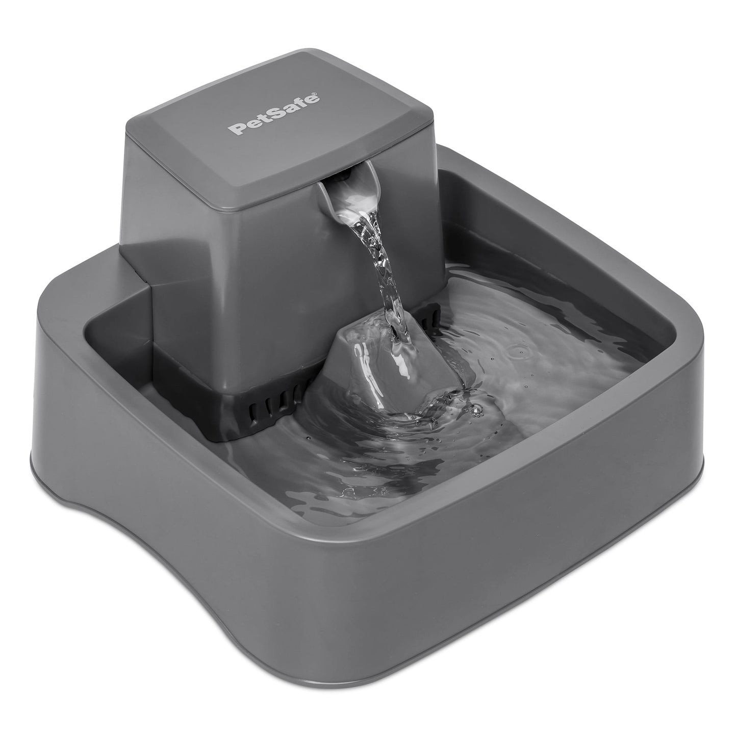 Some pets confidently try new things and others take a little more time. The 1/2 Gallon Pet Fountain lets you customize the flow of the free-falling stream so no matter your pets personality theyll feel comfortable drinking from their new fountain. Pets love running water and are drawn to it. Pet fountains entice pets to drink more water which keeps them healthy and hydrated. With the 1/2 Gallon Fountain pets can drink from the free-falling stream or the bowl (which is awesome) because your pet needs 1 ounce of water per 1 pound they weigh every day. To keep water fresh we use dual-filtration technology to remove pet hair debris bad tastes and odors. A carbon filter foam filter and fountain pump work together to keep water filtered and clean and the constant water circulation helps to prevent bacteria growth. The open design of this fountain means that even if the power goes out your cat will still have access to water. The wide bowl is whisker-friendly which keeps your cats sensitive whiskers from