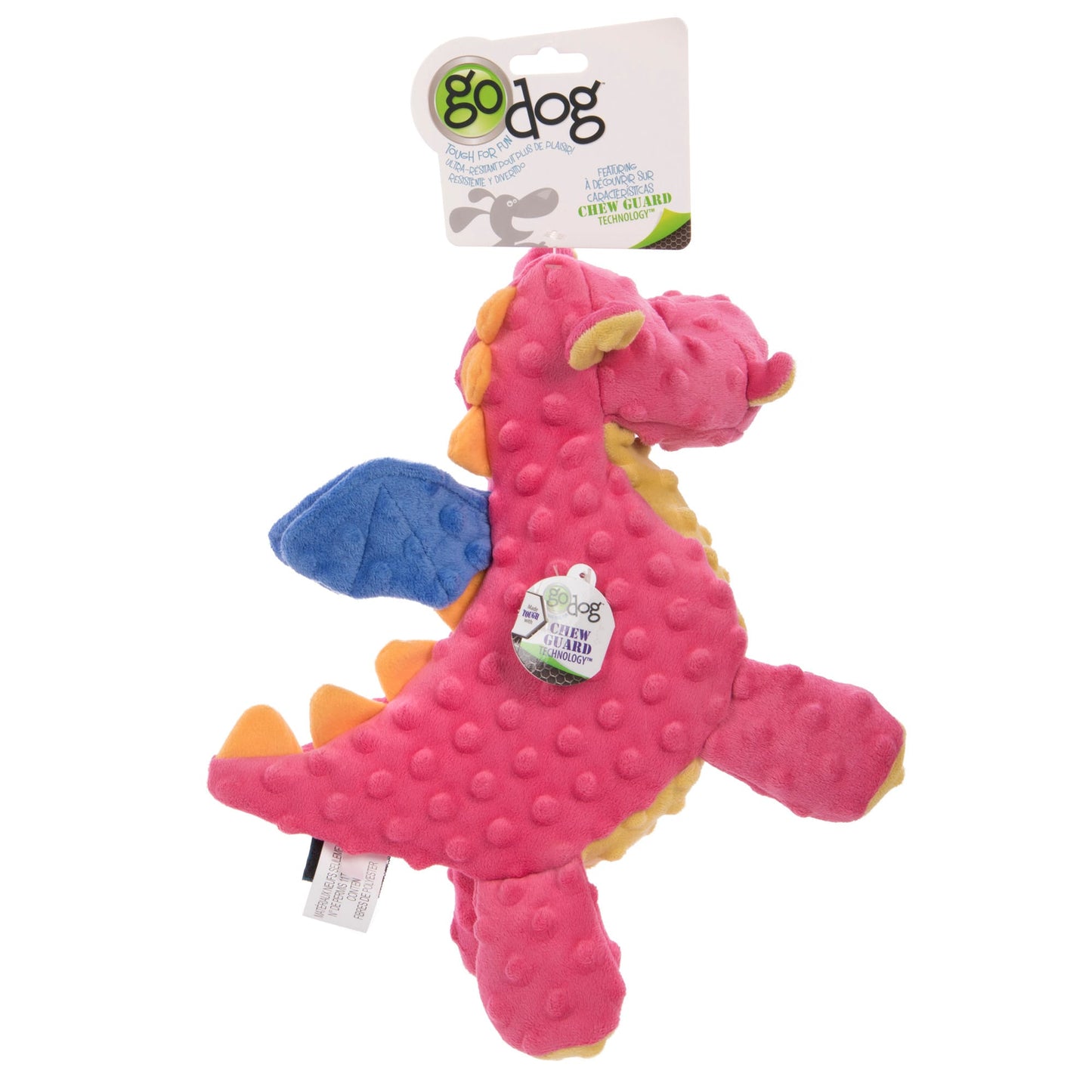 goDog dragons are whimsical bright creatures which are as tough as they are cute. Made with bubble plush and lined with Chew Guard Technology these toys stand up to tough play. Minimal stuffing gives these toys a fun floppy feel that dogs love. goDog plush dog toys are designed to be stronger and last longer no matter how your dog plays. These soft plush toys are made more durable with Chew Guard Technology which is a special manufacturing process that adds a super tough and durable lining to soft plush toys. goDog gives pet parents the best of all worlds: innovative products stylish designs environmental responsibility and exceptional value with a variety of toys and beds to meet a dog s needs for play retreat rest and fun! goDog products are designed to meet child safety standards and are backed by our 100% satisfaction guarantee. If a customer is dissatisfied with a goDog product for any reason we will replace or refund it.