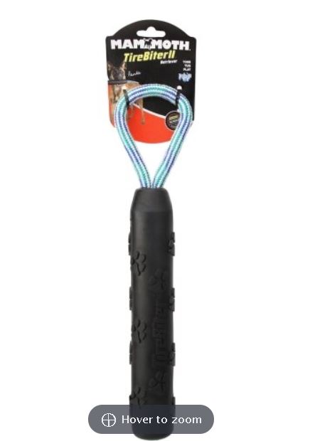 Mammoth Pet Tire Biter Retriever Dog Toy with Loop Rope Handle 11 . Made Real Tire Tough for heavy-duty chomping and interactive play. Designed and from an advanced natural rubber composition for EXTRA long lasting play. Sustainably manufactured in North . These dog toys are perfect for maintaining an excellent exercise regiment with dog and pet parent by playing fetch. Perfect for playing tossing and chewing. Playtime is important for creating that common bond between dog and pet parent. Excellent for enjoying hours of interactive playtime each day. Do not leave dog unattended with toy. Perfect for medium to large sized breeds.