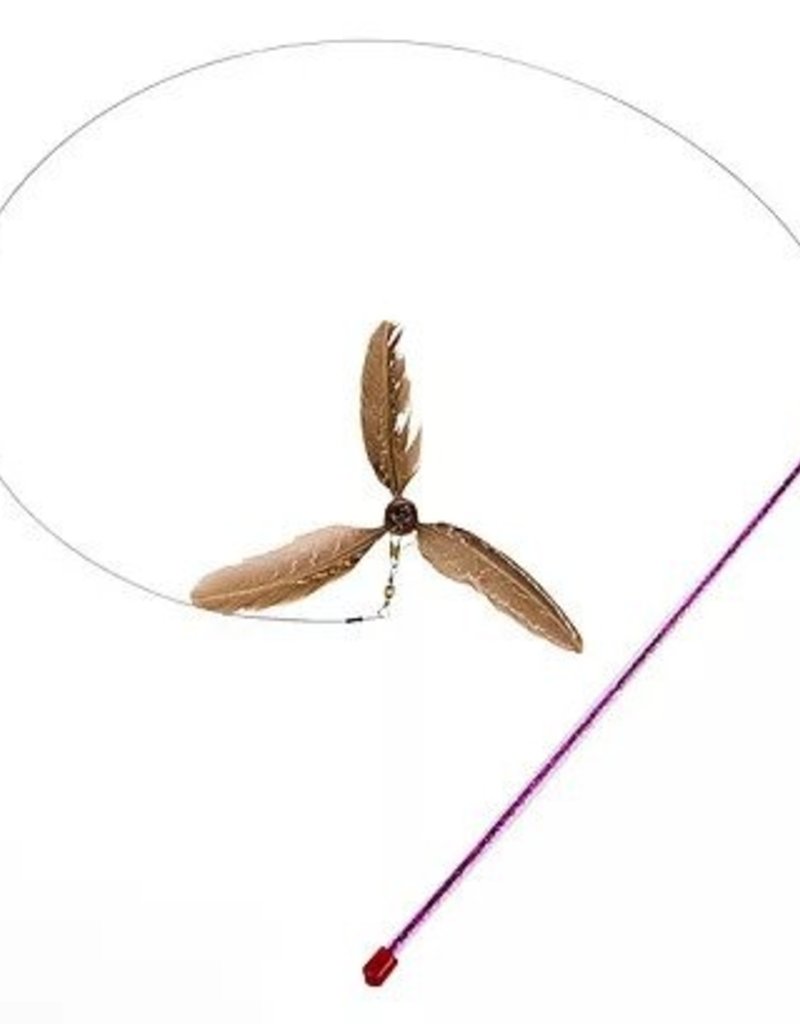DA PURR-PELLER has been carefully handcrafted in the by the Go Cat Feather Toy Team. Bring out the tiger in your cat. Cats have a natural hunting instinct and this Go Cat Da Purr-Peller engages that instinct in a fun and healthy way while giving them exercise. This toy features a propeller of feathers that spin when swung through the air that will capture your cat s attention and encourage them to hunt and stalk to their heart s content. DA PURR-PELLER is interchangeable with other GoCat poles for those of you who currently use the best cat toys on the market. Public Alert: Hide cat toys when not in use and supervise when in use. Inspect periodically for damage. Do not permit your pet to play with a toy that is broken or damaged. Please discard when worn. No pet toy is indestructible.