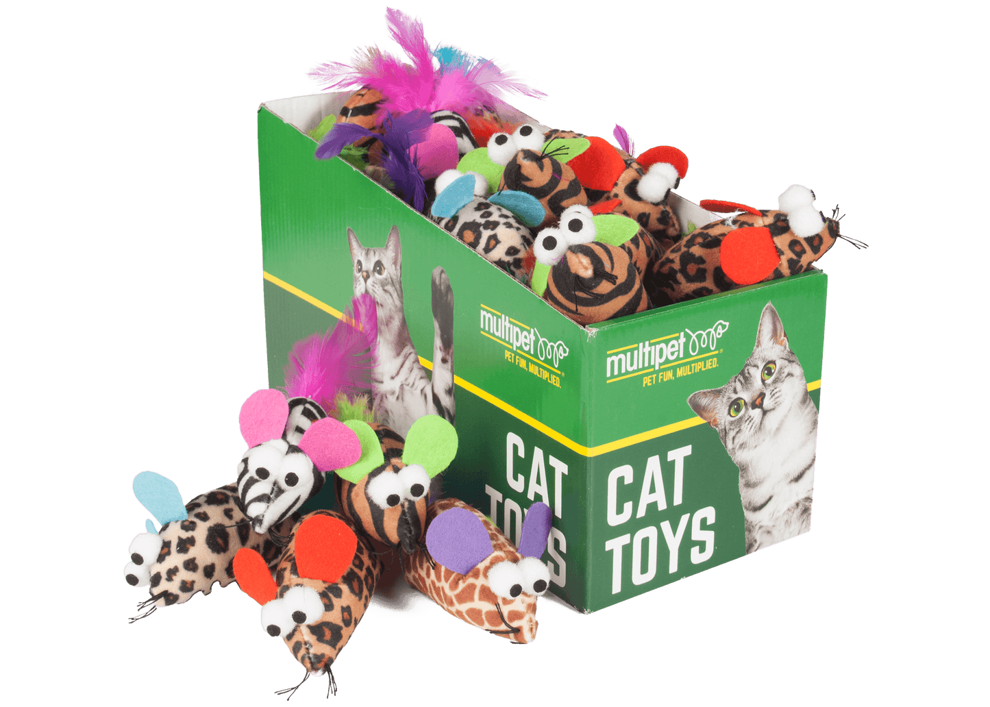Multipet Cat Toy Safari Feather Mice Catnip 6in Assorted