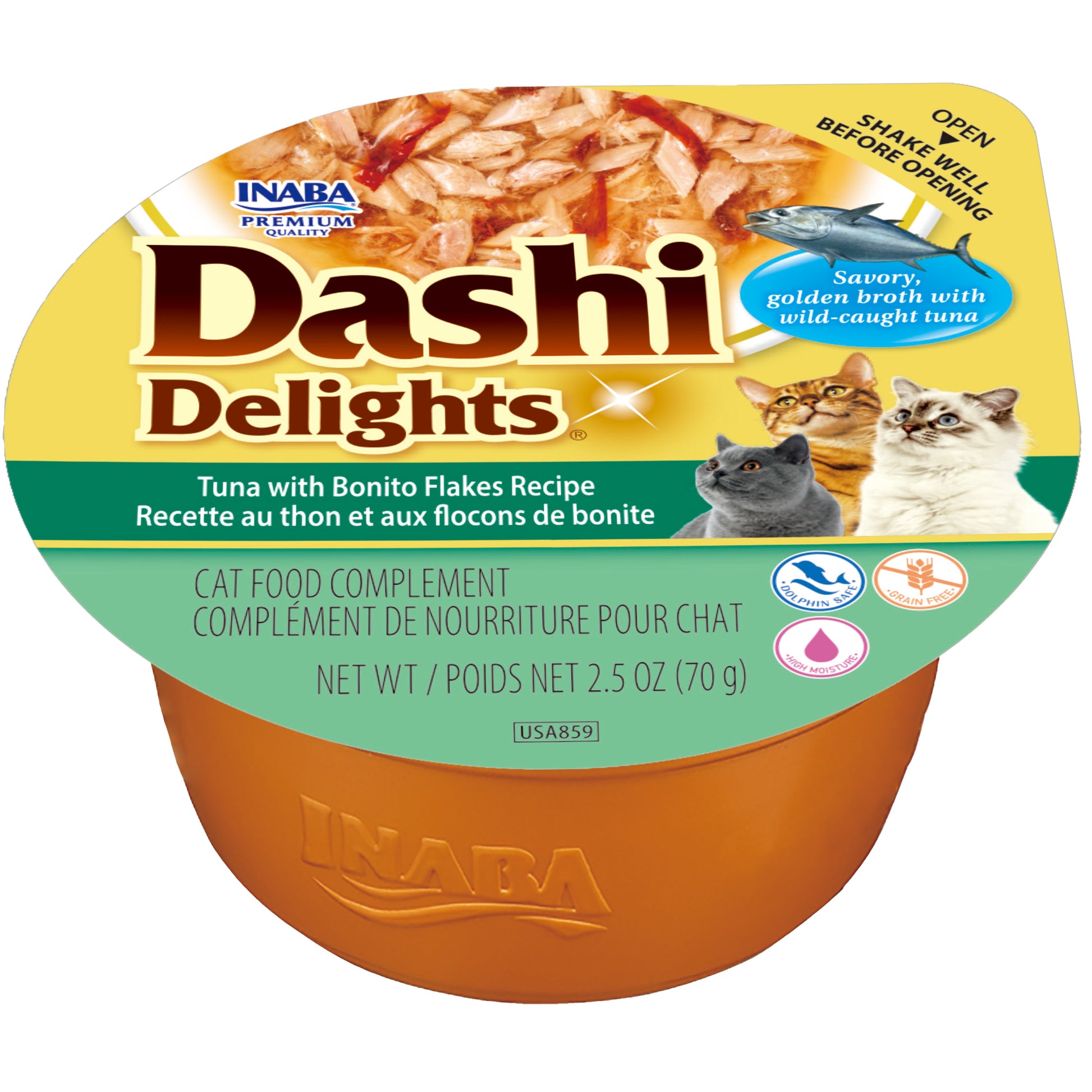INABA Dashi Delights for Cats, Shredded Tuna with Bonito Flake Broth, 2.5oz Cup, Tuna with Bonito Flakes Recipe