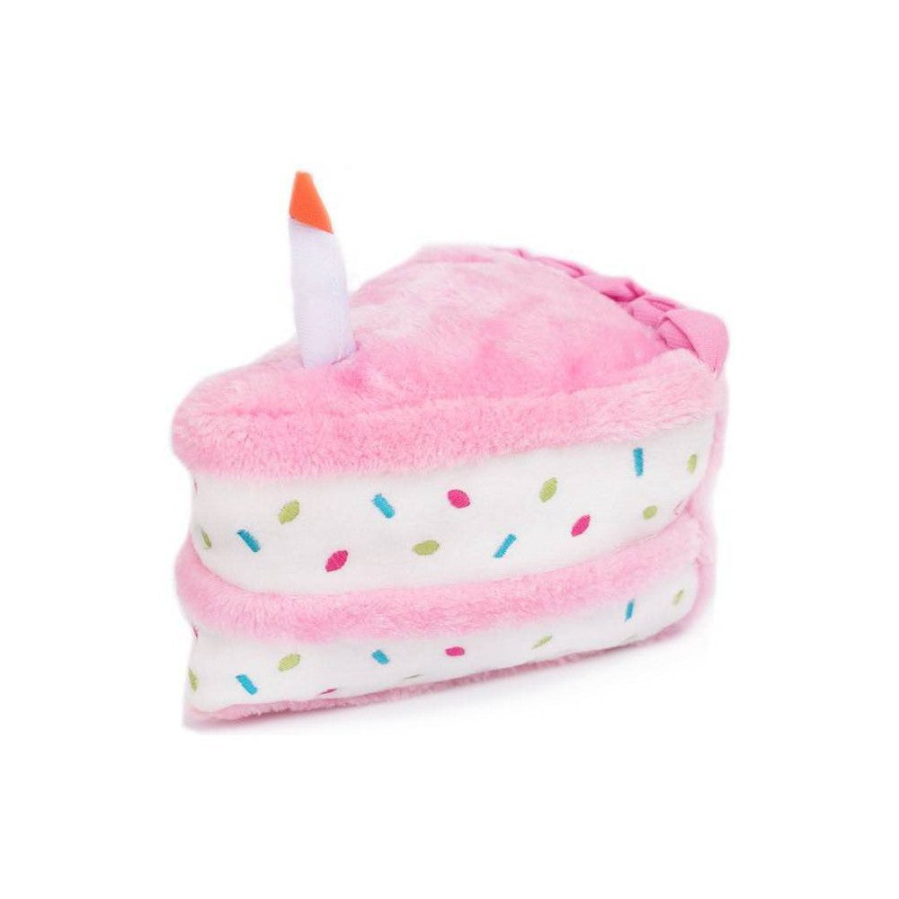 Celebrate your dog s birthday with an adorable ZippyPaws Birthday Cake Plush Dog Toy in Pink! 1 Blaster squeaker inside Great for dogs of all sizes Stuffed Why We Love It: This tasty slice of cake comes with colored frosting sprinkles and a cute candle. Perfect for birthdays or any other events that require cake. Also Comes In:? Blue Sizing Information: 7 x 5 x 5 inches