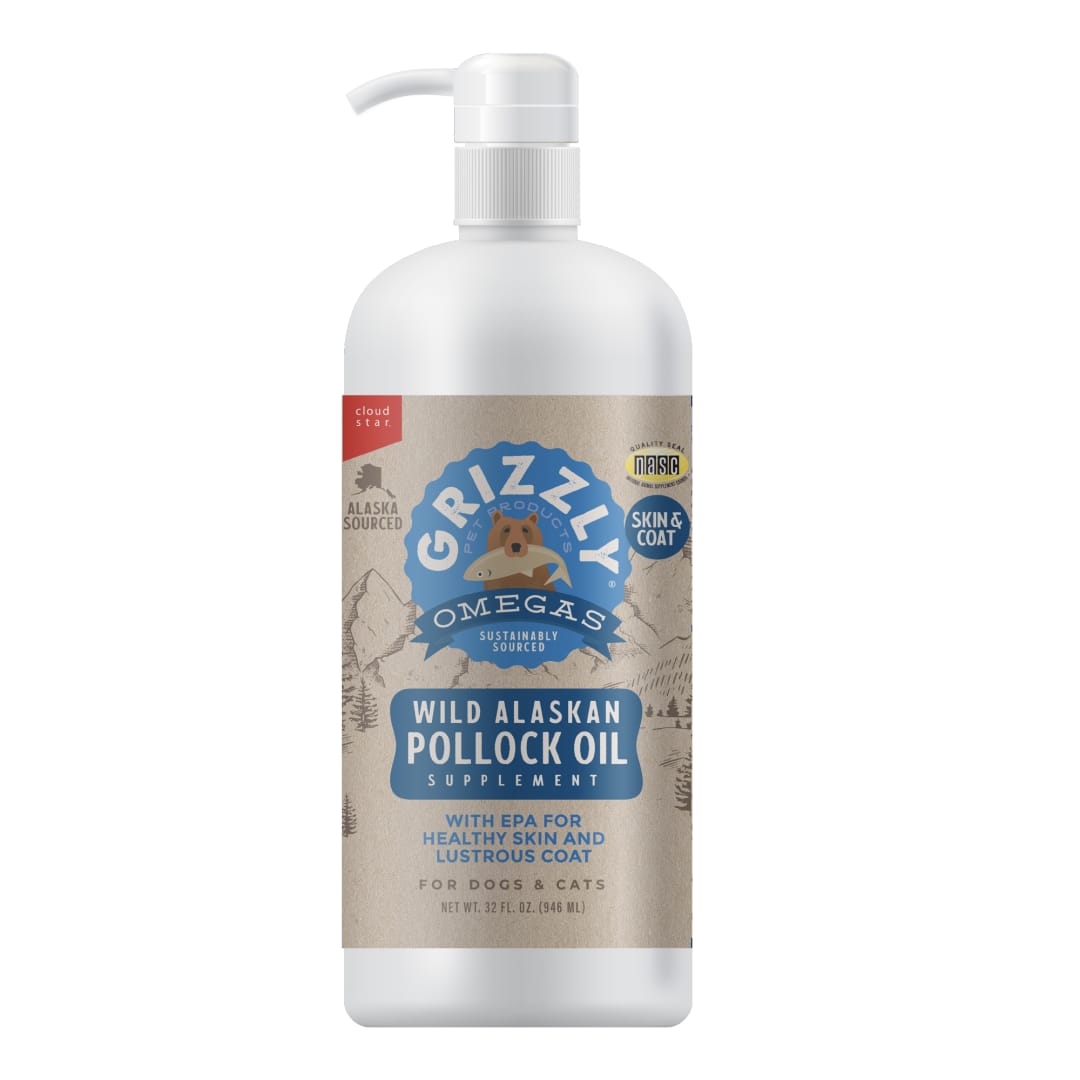 Our Grizzly Pollock Oil™ Dog Food Supplement is made from wild-sourced Alaskan pollock and boasts a very high content of the Omega-3 fatty acid EPA and a very low Omega-6 content—making it ideal to support a healthy skin and coat.