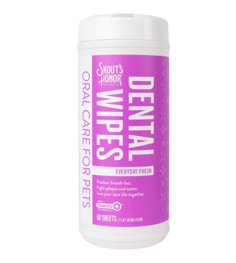 Skout’s Honor Dental Wipes are proven to freshen breath fast, while helping to reduce plaque and tartar at the source. This pet-safe solution makes it easy to create a better oral care routine for your pet - no brushing required!